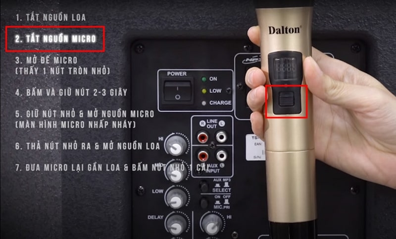 Bước 2: Tắt nguồn micro bằng công tắc hoặc nút gạt trên thân thiết bị.