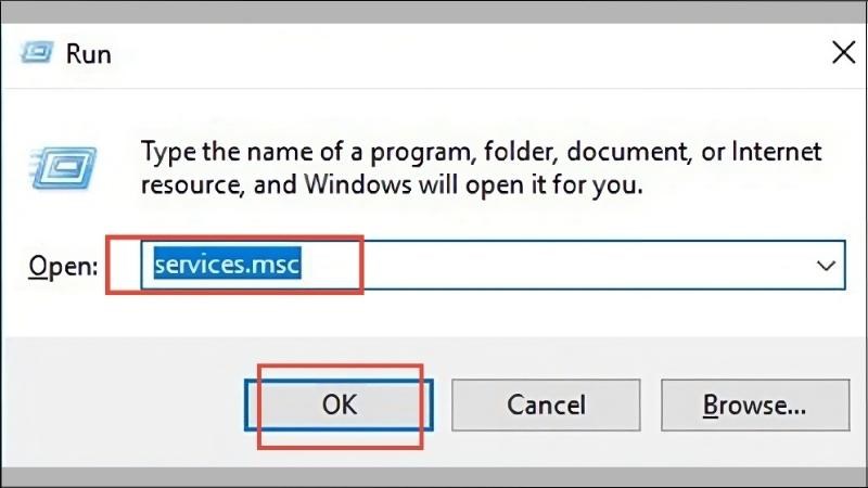 Bước 1: Nhấn Windows và R để mở cửa sổ Run, nhập services.msc.