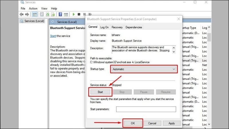 Bước 3: Chọn chế độ Automatic, sau đó nhấn Start để kích hoạt lại dịch vụ.